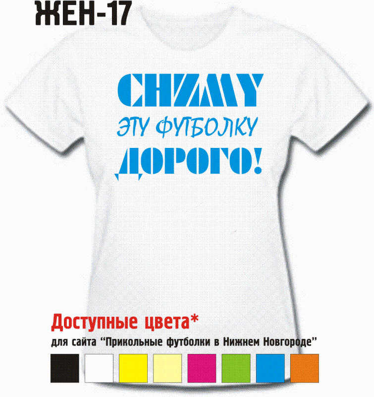 Мужские и женские футболки плотностью 165-180 г/кв.м, срок изготовления - 3-4 рабочих дня, возможные цвета футболок указаны внизу макета, ЗВОНИТЕ!